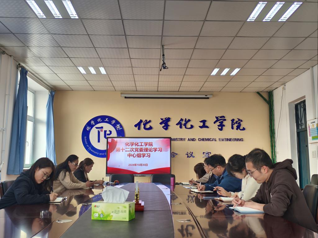 为深入领会习近平总书记重要论述及讲话精神,提升文化素养,坚持守正创新,推动教育发展,为学院建设注入强大动力,10月30日14:30,化学化工学院在理工楼564开展第十二次党委理论学习中心组学习。本次学习由党委书记邵艳秋主持,党委理论中心组成员参加。