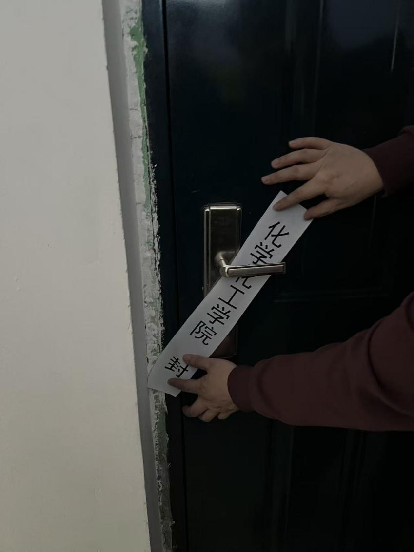 本次检查了各实验室水电安全、危险化学品管理、假期实验室开放等情况,检查过程中,实验室安全环境良好,部分实验室存在废液桶标识不清等安全隐患,检查小组要求抓紧进行安全整改,积极排除安全隐患,保障学院实验室安全。寒假期间内,学院无学生进行实验科研工作,实验教辅人员已经对负责的实验室检查水电、贴好封条。