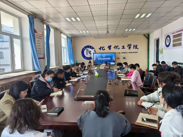 为深入推进科研诚信建设,严明学术纪律,筑牢全院教职工思想道德防线,营造风清气正的科研育人环境,化学化工学院采用集中学习+分散研讨相结合的方式,扎实开展学术不端警示专题培训。4月15日13:30,学院集中学习会在理工楼564会议室召开,本次会议由科研院长任玉兰主持,全院教职工参会学习。